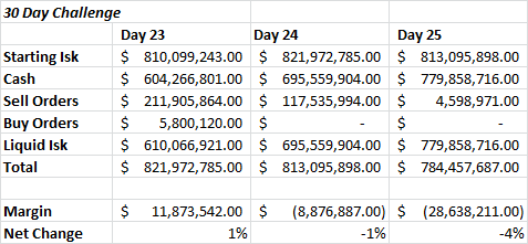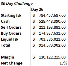 Also, a bit of a side note due to financial considerations: if between my current accounts and this experiment I cannot PLEX the market account, I will have 26 days on the market account, so this may be a 28 Day Challenge depending on how well it works.