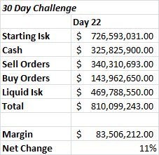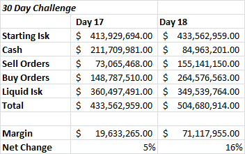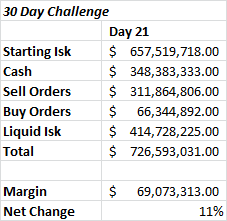 I'm glad the day went well, because I was starting to get a bit weary of the Jita trade scene, and a nice day makes the whole trade enterprise more fun. I may have some fun charts coming, If I can be arsed to censor the data down. Maybe I'll post it on Day 15 as the "Half Marathon" post.